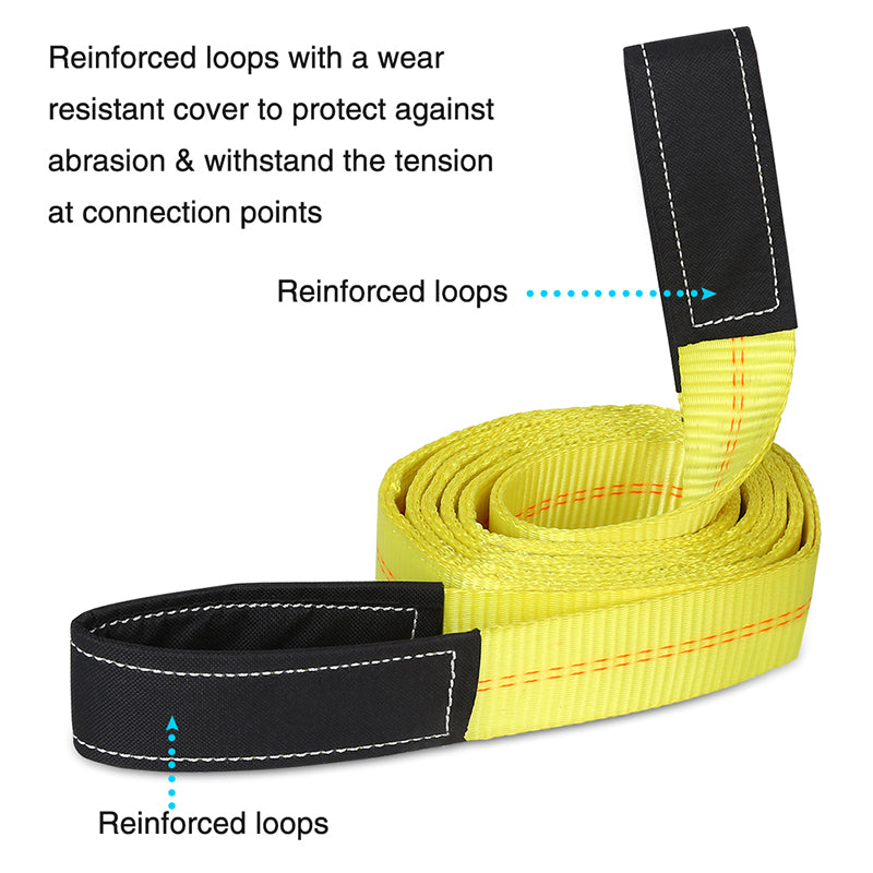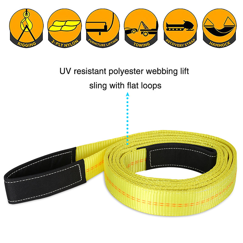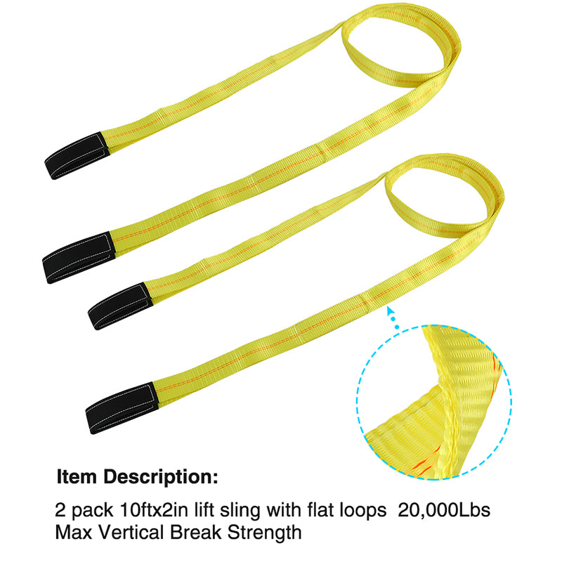 - Durable - Our Polyester Webbing Sling is 2 inches width straps with flat eyes at each end, Each loop end has excellent wear property to provide more durability when attaching to shackles or over hooks. which offers greater surface contact to protect the load from damage.