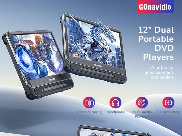 - 【2 X Car DVD Players】The Newest 12" dual car DVD players features upgraded chips for clearer, more vivid. The enhanced mounting bracket ensures stability, preventing drops or other issues on bumpy roads. You can connect the two players via AV cable to share the same movie or play different discs according to personal preferences, making journeys enjoyable. Allows you to focus on driving without worrying about anything from the backseat.