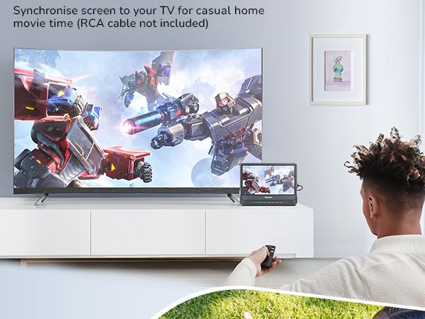 - 【Sync Screen & Last Memory Function】You can use the provided RCA cables to sync the screen to the TV or projector for a larger viewing experience. The portable car DVD player features built-in last memory function, allowing you to resume from where you left off. No worries about restarting from scratch, the fun continues seamlessly!