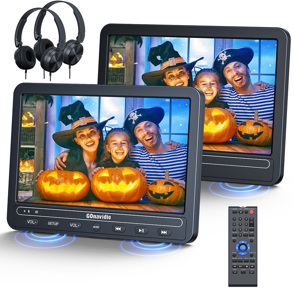 10.5" Dual Screen Portable DVD Player for Car with Built-in Rechargeable Battery, Support USB/SD Card, Last Memory